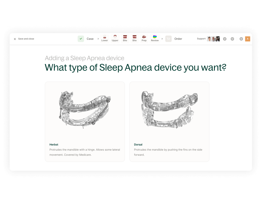 Dandy offers Herbst and Dorsal appliances as solutions for treating sleep apnea.
