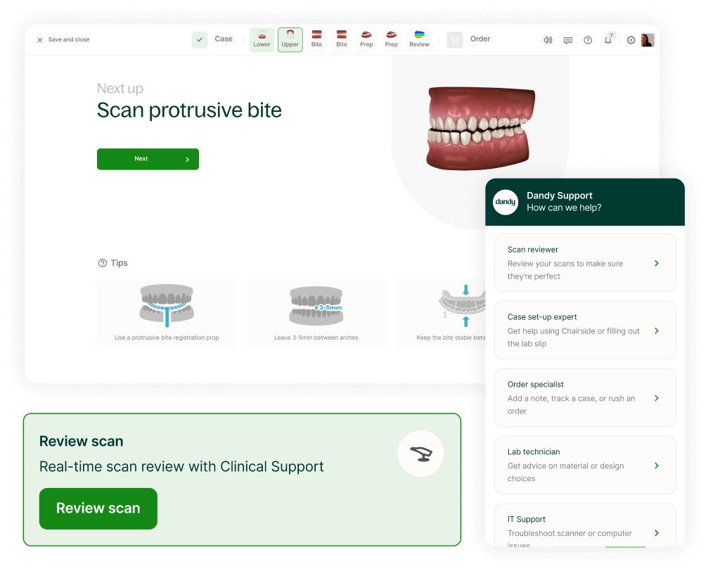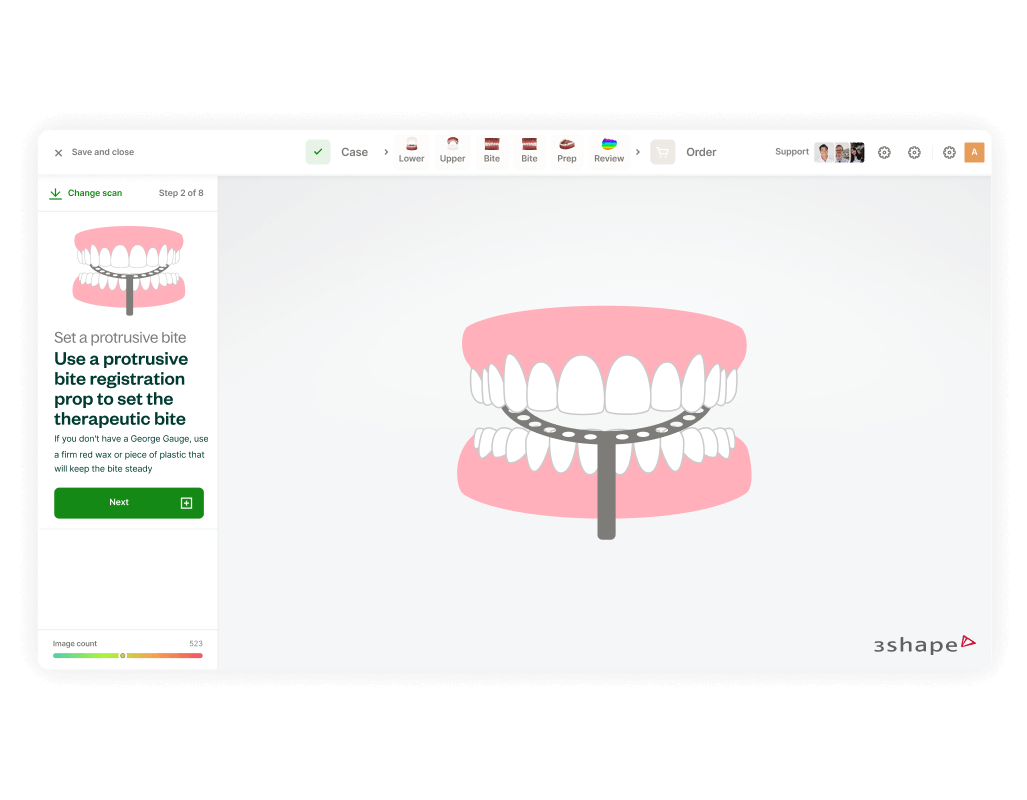 In order to capture the information needed to create a mandibular advancement device, digital impressions should capture the upper arch, lower arch, and protruding bit scans. Some key tips: